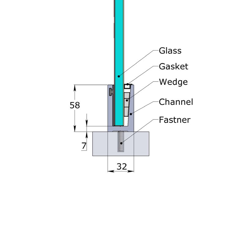 58 x 32 Continuous Channel is a sleek and durable profile used in glass aluminum railing systems to securely hold glass panels in place. With dimensions of 58mm width and 32mm height, it offers a low-profile yet strong base for frameless or semi-frameless glass installations. Made from high-quality aluminum, it ensures corrosion resistance and long-term performance in both indoor and outdoor settings. Its continuous design provides a seamless look along balconies, staircases, or partitions. Easy to install and maintain, it is ideal for modern architectural applications.